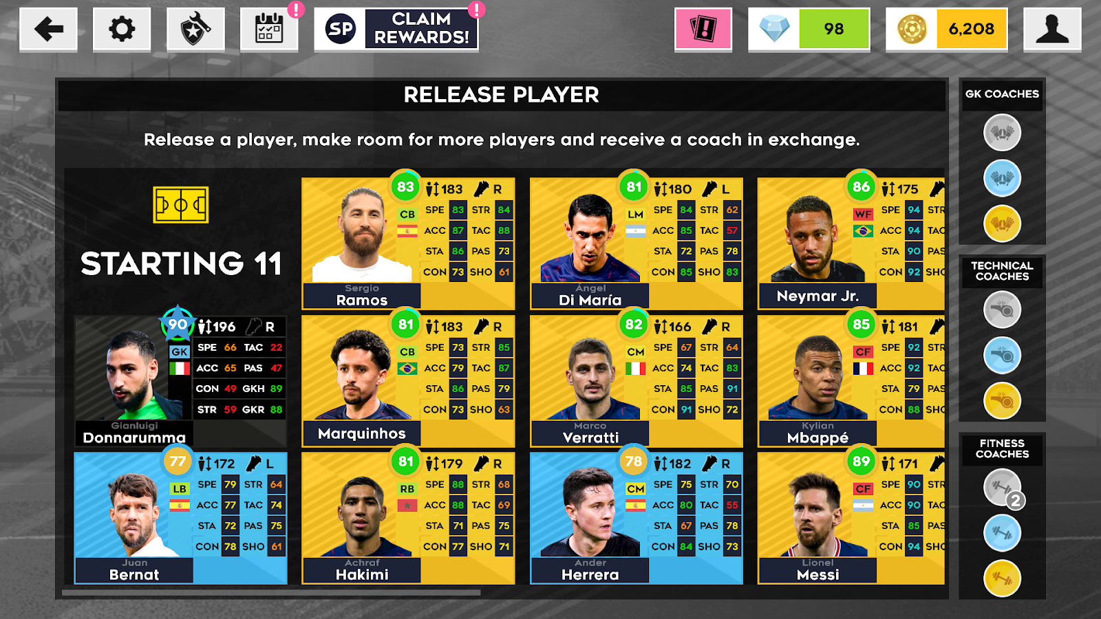 | CHÚ Ý | Có thể chơi 2 đội hình + Có 3 cầu thủ vàng mới là Foden, Chiesa , Hakimi và thủ môn đã nâng max |